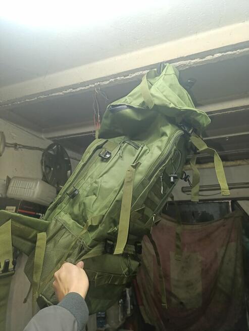 Duży plecak turystyczny ze stelażem w kolorze zielonym w bdb stanie.Idealny do długich wypraw w góry lub na camping. ...